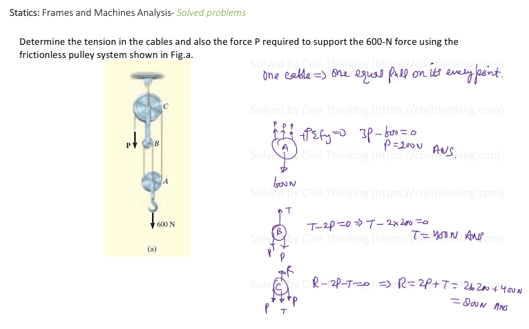 - Determine-the-tension-in-the-cables-and-also-the-force-P-required-to-support-the-600-N-force-using-the-frictionless-pulley-system-shown-in-Fig.a.pdfView Download
