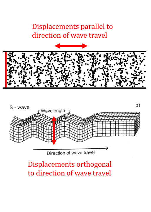 • push-pull (compress and extend) motion, changing the volume of transmitting materials