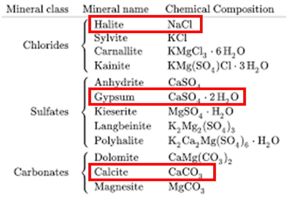 • These tend to be Chlorides (with a Cl), Sulfates (with a SO4), and Carbonates (CO3), as these three anions* are fairly concentrated in seawater.