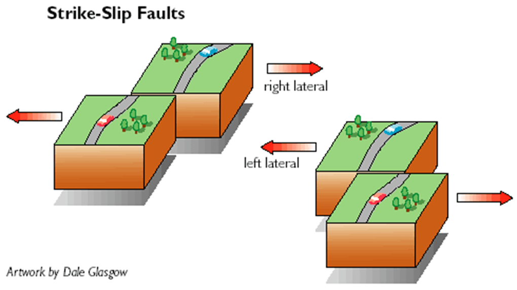 If it’s moving to the left, the fault is LEFT LATERAL (sinistral)